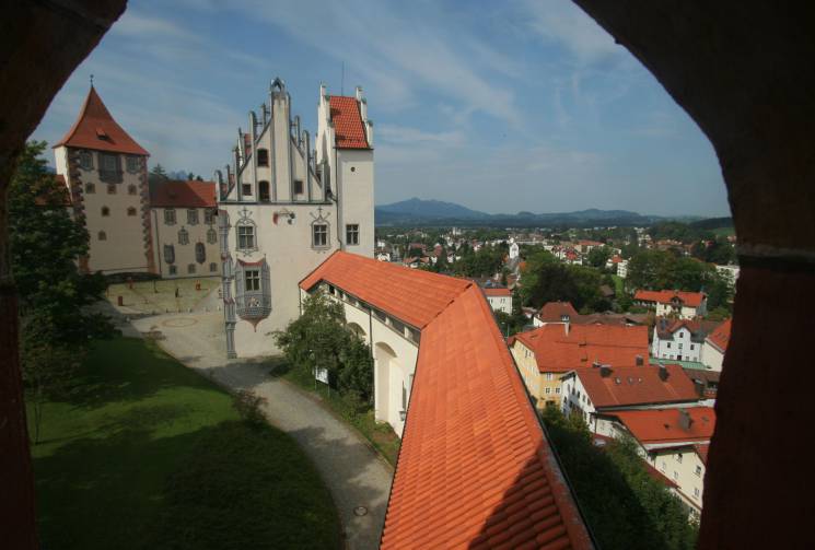 Über der Füssener Altstadt thront das Hohe Schloss – und in seinen Räumen befindet sich die Staatsgalerie im Hohen Schloss sowie die städtische Gemäldegalerie.Die Staatsgalerie zeigt Tafelbilder und Skulpturen der Spätgotik aus dem schwäbisch-bayerischen Raum, abgestimmt auf den historischen Rittersaal mit prächtiger Holzdecke.