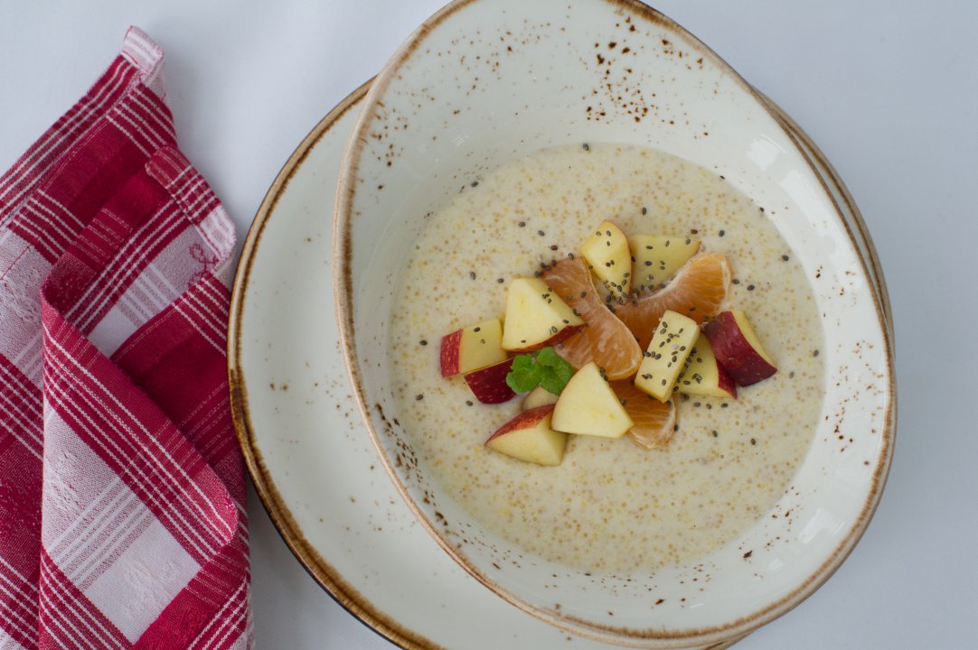 Milch mit Wasser vermischen und gemeinsam aufkochen. Dann Amaranth und Maisgrieß mit dem Schneebesen einrühren und ungefähr 10 Minuten köcheln lassen. Dabei immer wieder umrühren. Abschließend Sahne und Butter unterheben, mit Salz und Gewürzen abschmecken. Der Brei kann mit allem serviert werden, wonach einem der Sinn steht: frischem Obst, Ahornsirup, Kokosraspeln... Es soll sogar Leute geben, die sich den Brei mit einem kurzen Espresso verfeinern.