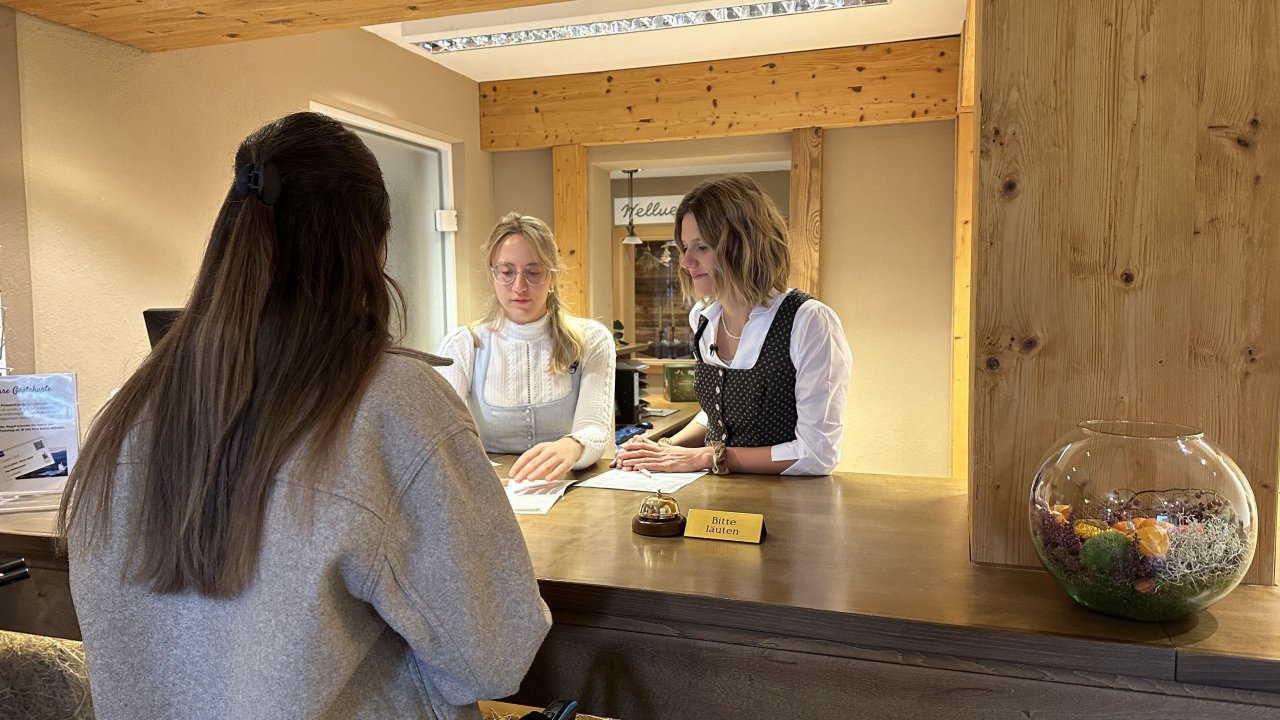 Auch wenn die Ausbildung im Hotel vielseitig ist, liegt der Schwerpunkt klar auf der Verwaltung – und damit natürlich auch auf der Rezeption, meinem nächsten Einsatzort. Doch von Routine kann selbst hier noch lange keine Rede sein, denn es erwarten mich allerlei Aufgaben wie: Der Check-in von neu angereisten Gästen. Das Beantworten von Fragen am Telefon oder per Mail. Die persönliche Beratung zu Angeboten im Haus, Wanderungen oder Wellness- und Therapiemöglichkeiten. Das Erstellen von Angeboten, Reservierungen und Abrechnungen. Das kreative Gestalten von Menükarten, der Tagespost oder des Wochenprogramms. Und am Ende des Aufenthalts der Check-out und das Verabschieden der Gäste. Hinter all diesen Aufgaben steht jedoch immer das gleiche Ziel: Dem Gast einen unvergesslichen Aufenthalt zu ermöglichen.