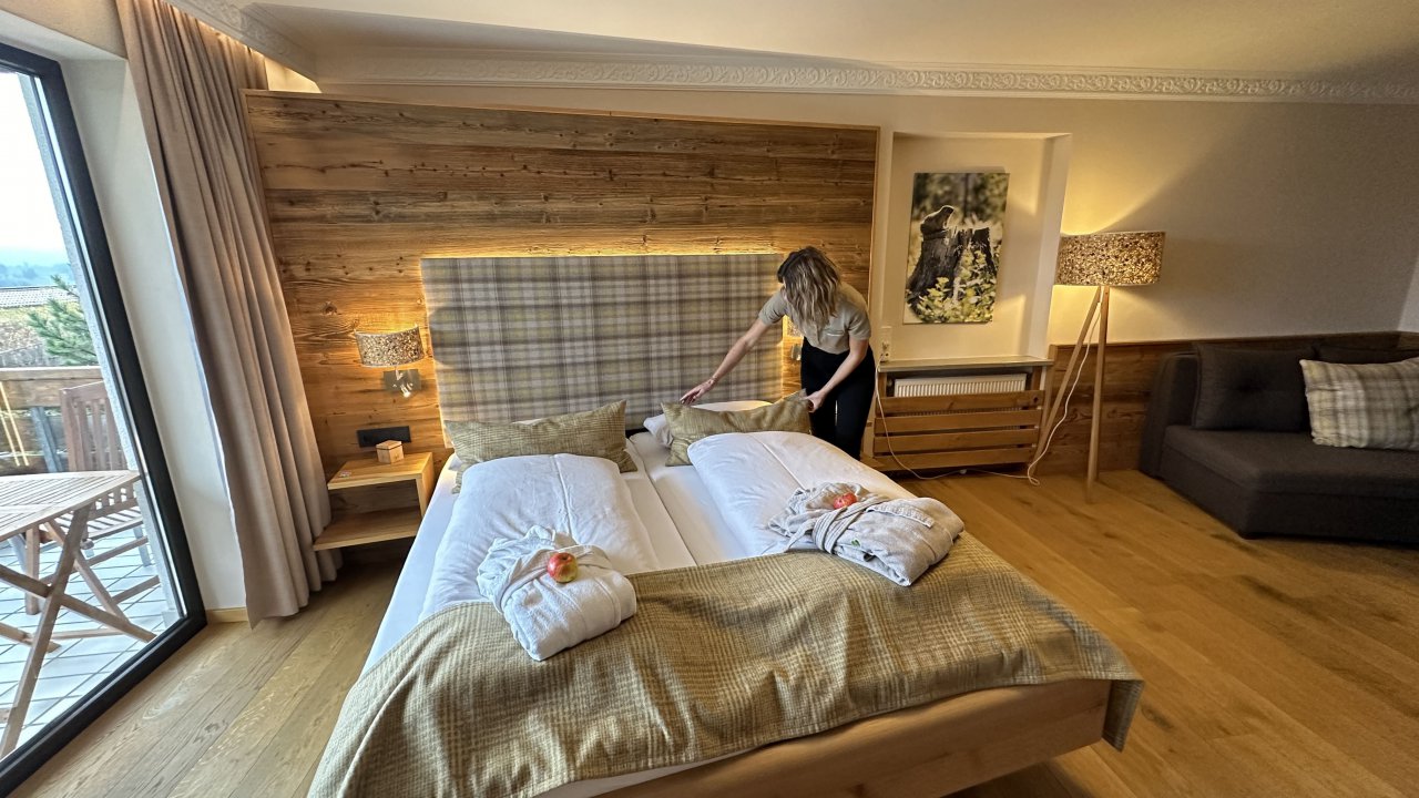 Der Hopfensee bei Füssen, mit seinem kristallblauen Wasser und dem beeindruckenden Bergpanorama im Hintergrund, ist einer meiner Lieblingsorte im Allgäu für gemütliche SUP-Touren. Umso schöner ist es, dass mich meine nächste JobQuest ins Biohotel Eggensberger führt – das nur einen Katzensprung vom idyllischen Seeufer entfernt liegt. Schon beim ersten Rundgang durch das naturnahe 4-Sterne-Hotel wird mir klar: Hier ist BIO nicht nur ein Label, sondern das Herzstück der gesamten Hotelphilosophie. Das zeigt sich nicht nur in der Bio-zertifizierten Vitalküche, die mit regionalen und saisonalen Köstlichkeiten überzeugt, sondern auch in vielen weiteren liebevollen Details. Dazu gehören unter anderem: Der „Gute-Nacht-Schalter“ in den Gästezimmern, der für einen elektrosmogfreien Schlaf sorgt. Die hochwertige Naturkosmetik im SPA-Bereich. Und die natürlichen Reinigungsmittel im Housekeeping. Selbst beim Thema Energie setzt das familiengeführte Hotel auf 100 % Ökostrom, der zum Großteil auch direkt vor Ort produziert wird. Das Resultat? Ein Urlaubserlebnis, das so natürlich schön ist wie die Umgebung selbst. Und wie all das hinter den Kulissen entsteht, darf ich heute als Hotelfachfrau selbst herausfinden.