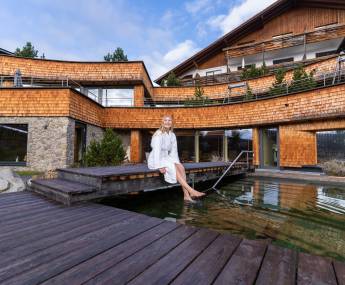 Endlich Zeit zum Ausspannen: Finden Sie Ihren ganz persönlichen Lieblingsplatz in unserem Wellnesshotel im Allgäu: in einer der Saunen, in den bequemen Liegen und Sitznischen der großzügigen Ruhebereiche oder draußen am Natur-Schwimm-Pool. Das lichtdurchflutete Ambiente wirkt mit duftendem Holz, Naturstein, Lehmwänden und Wassergeplätscher natürlich entschleunigend. Im Wellnessbereich lassen Sie den Alltag hinter sich und finden bei einer Massage, Körperpackung oder Beautybehandlung mit pflegenden Naturprodukten und hochwertigen Ölen zu neuer Gelassenheit. Dabei lassen Sie die Wellness-Therapeuten mit einfühlsamen Handgriffen pure Entspannung spüren.